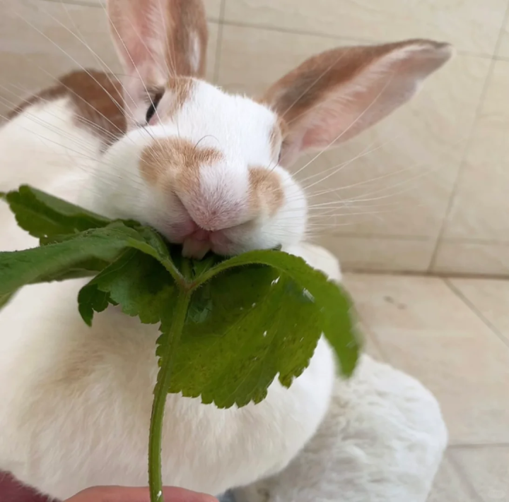“真羡慕你,我们这边都是自己种的,它不光可以养兔子,也可以做菜吃。”